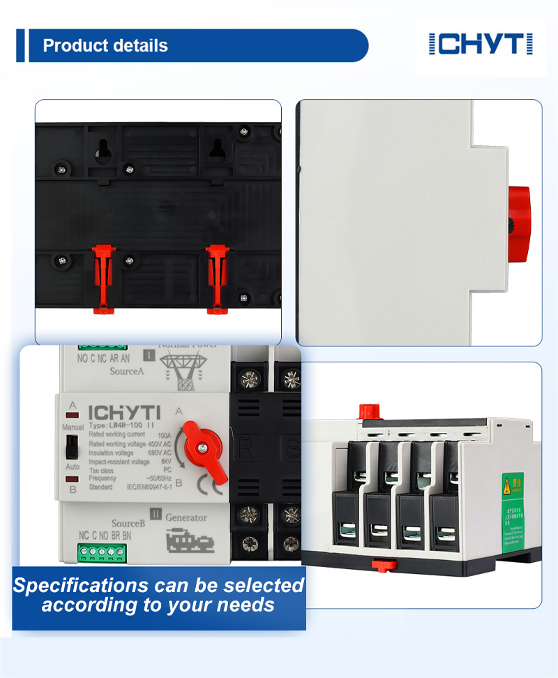Wenn Sie einen hochwertigen automatischen 100-A-Umschalter für Ihre spezifischen Anwendungsanforderungen benötigen, kann Ihnen der Online-Service von China ICHYTI umgehend weiterhelfen. Neben den aufgeführten Produkten bietet ICHYTI auch die Möglichkeit, Ihren einzigartigen automatischen 100-A-Umschalter an Ihre spezifischen Anforderungen anzupassen. Bitte nutzen Sie unseren Online-Service für zeitnahe Hilfe. Der automatische 100-A-Umschalter von ICHYTI wird nach Europa, in die USA, in den Osten sowie in andere Länder und Regionen exportiert.